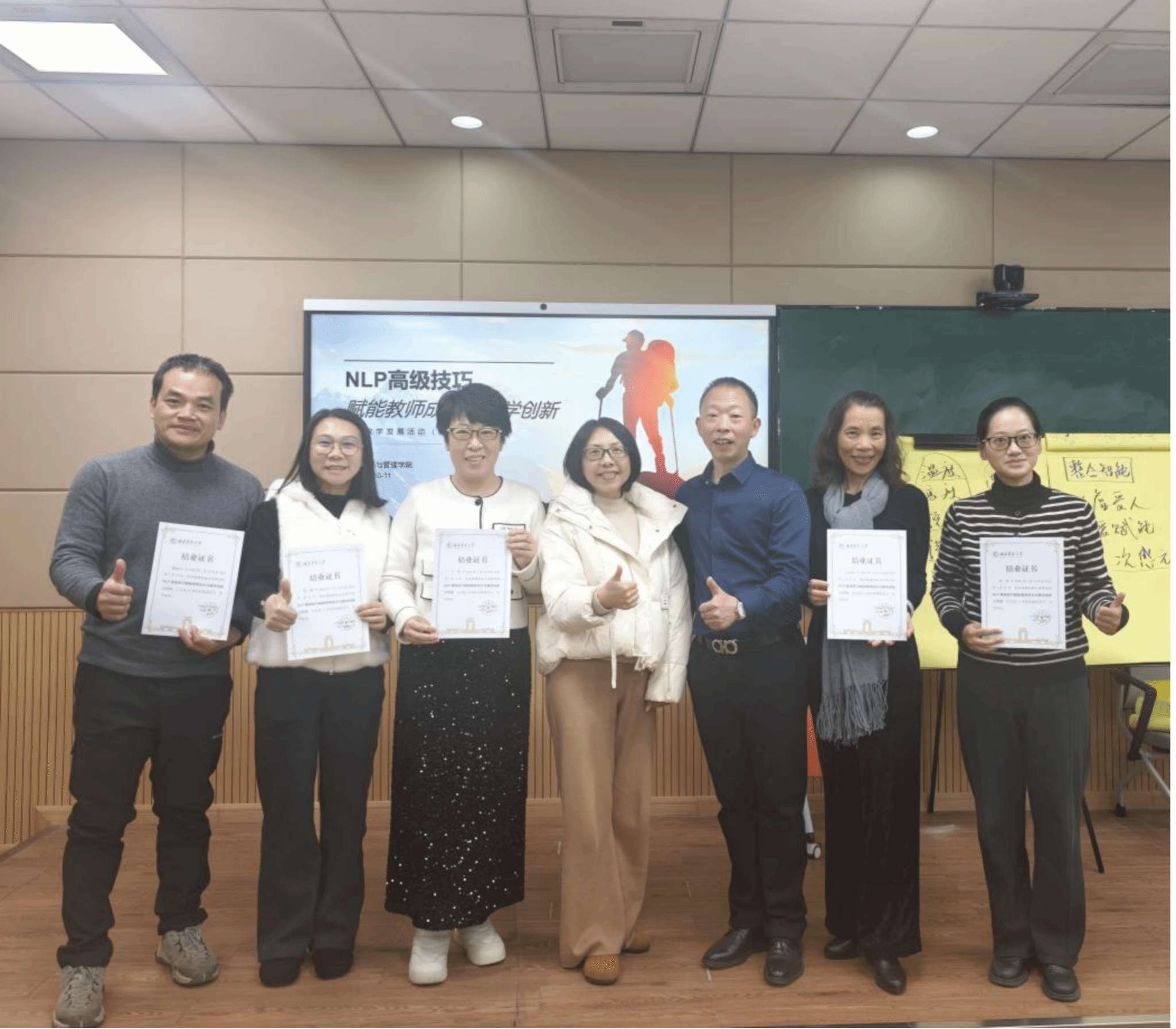 2026年1月10—11日,我校教务处“NLP高级技巧赋能教师成长与教学创新工作坊”,校教师教学培训师团队建设项目负责人、经济与管理学院胡涛老师担任课程引导师。我校教师教学培训师及来自兄弟院校的一线骨干教师共40余人参加本次全程封闭式工作坊,围绕教师专业成长与教学创新展开深入研修与探索。NLP(Neuro-Linguistic Programming,神经语言程序学)是一套研究人类思维模式、情绪状态与行为表现之间内在规律的方法体系,强调通过觉察与调整认知、语言和行为模式,促进个体成长与效能提升。本次工作坊立足高校教师教学发展需求,系统引入NLP高级技巧,为教师成长与教学创新提供了全新的视角和可操作路径。中心成员庄佩芬教授和林畅副教授参与本次活动。